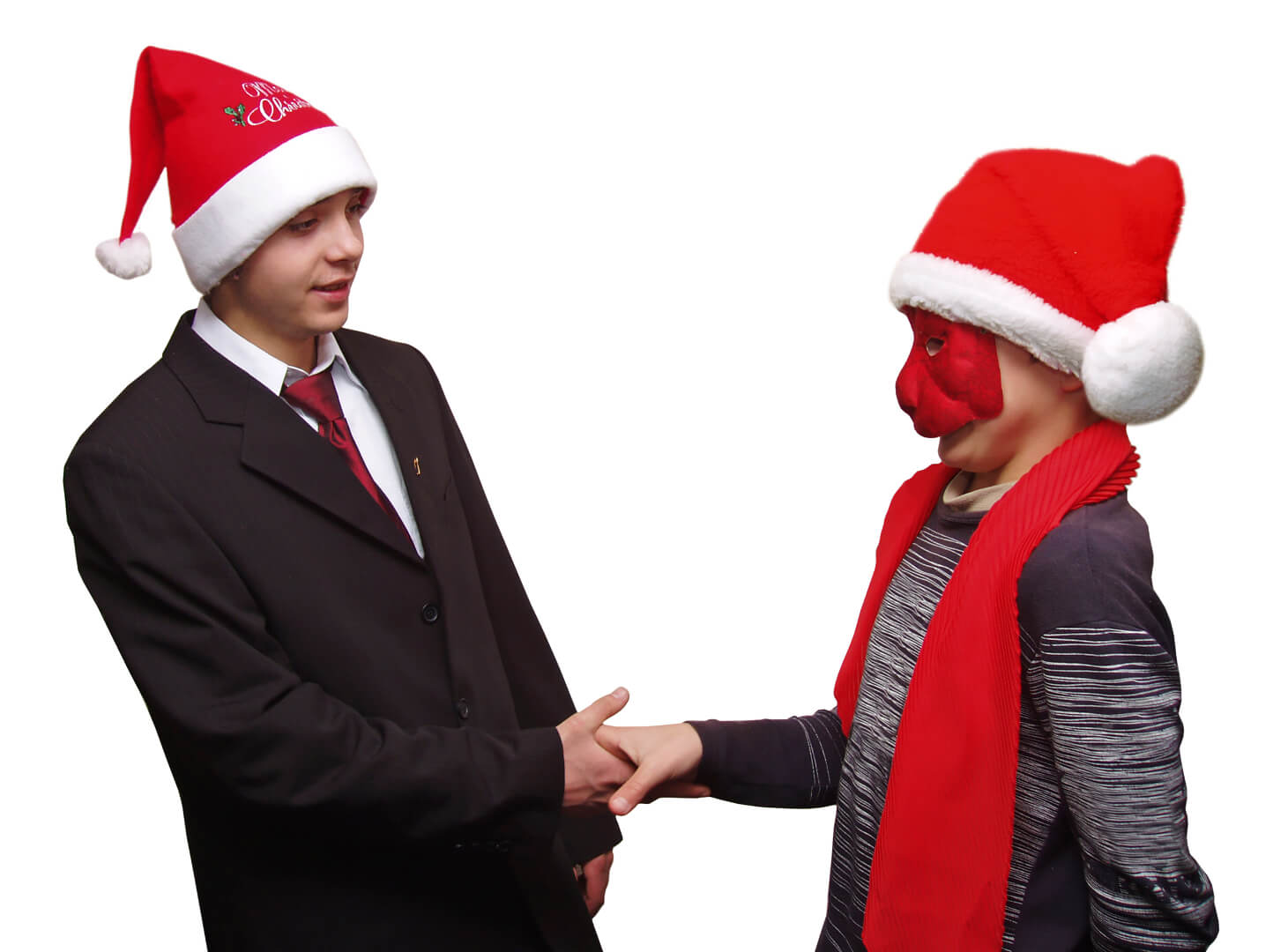 dwa kosze, dwa komplety jednakowej liczby ubrań i rekwizytów dla przebierańca