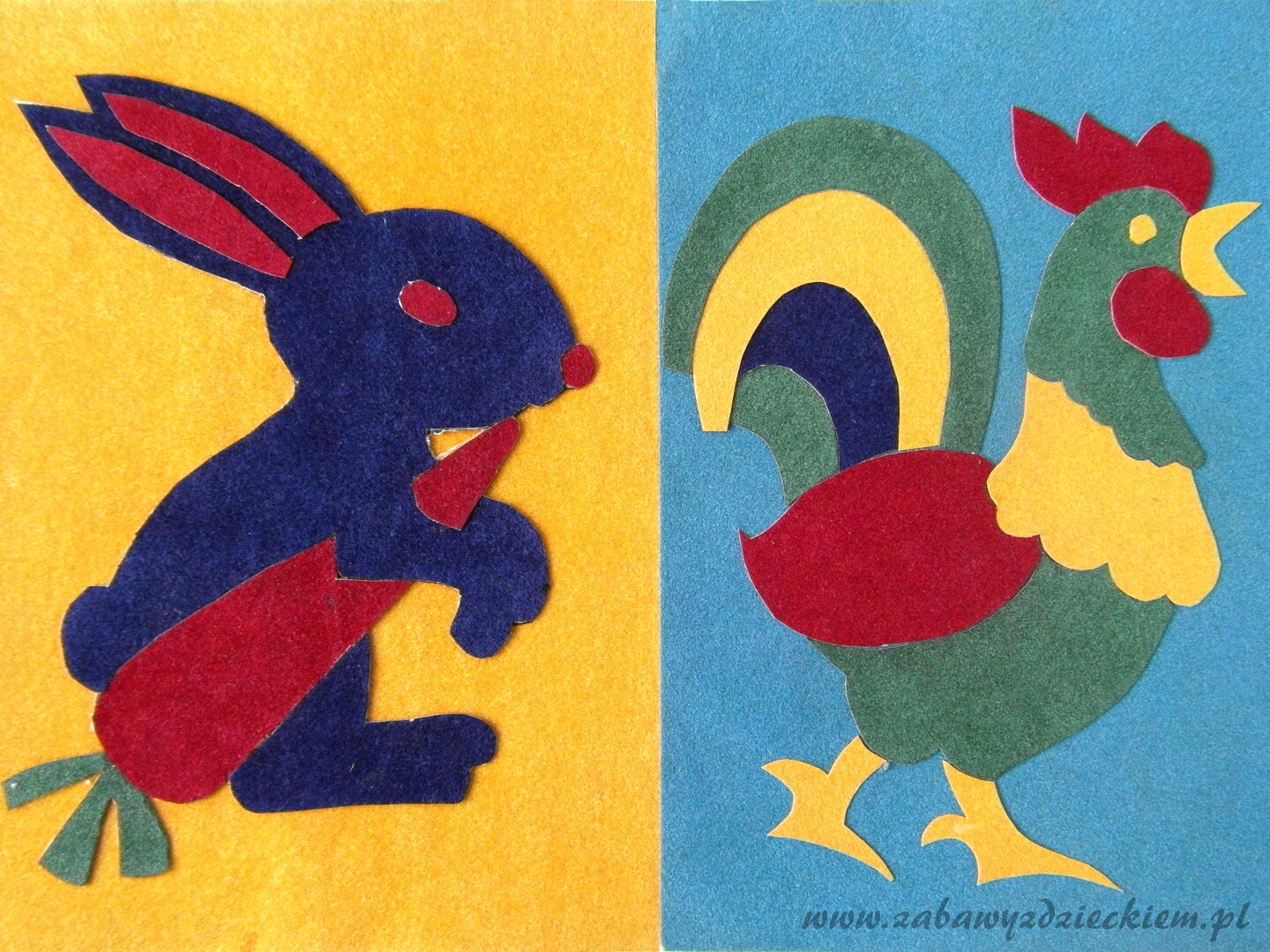 Z jednego arkusza wycinamy prostokąt takiej wielkości, jakiej chcemy uzyskać obrazek. Z innych kolorowych arkuszy wycinamy pozostałe elementy obrazka. Żeby ułatwić pracę, możemy najpierw na zwykłym papierze rozrysować projekt obrazka i wyciąć z tego szablony. Tak przygotowane szablony przykładamy do arkuszy filcu i wycinany odpowiednie elementy. Następnie przyklejamy je w odpowiedniej kolejności do arkusza filcu stanowiącego tło obrazka tak, by uzyskać zaprojektowany wcześniej obrazek.