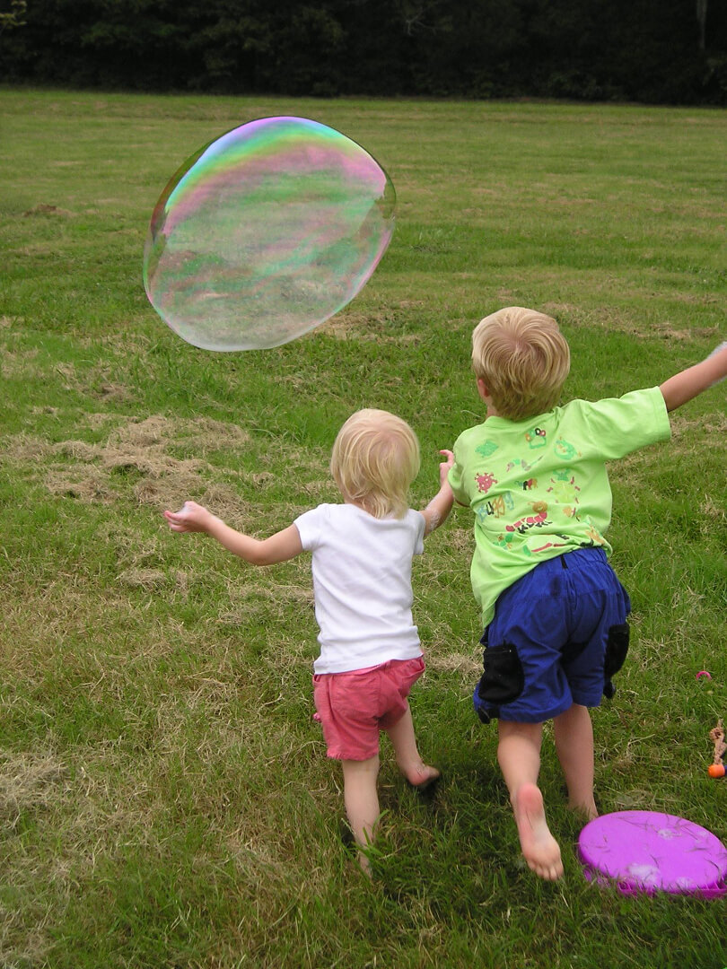 Po tych przygotowaniach wystarczy zanurzyć wybrany przyrząd w odpowiednio dużym naczyniu z płynem, wyjąć i dmuchać. Dobra zabawa gwarantowana.