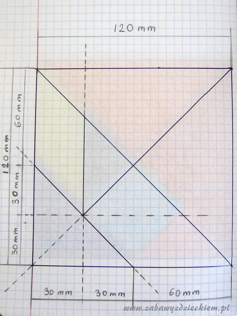 coś do pisania, linijka, nożyczki, kartka sztywnego papieru (lub cienka kartka i karton, na który ją przykleimy)