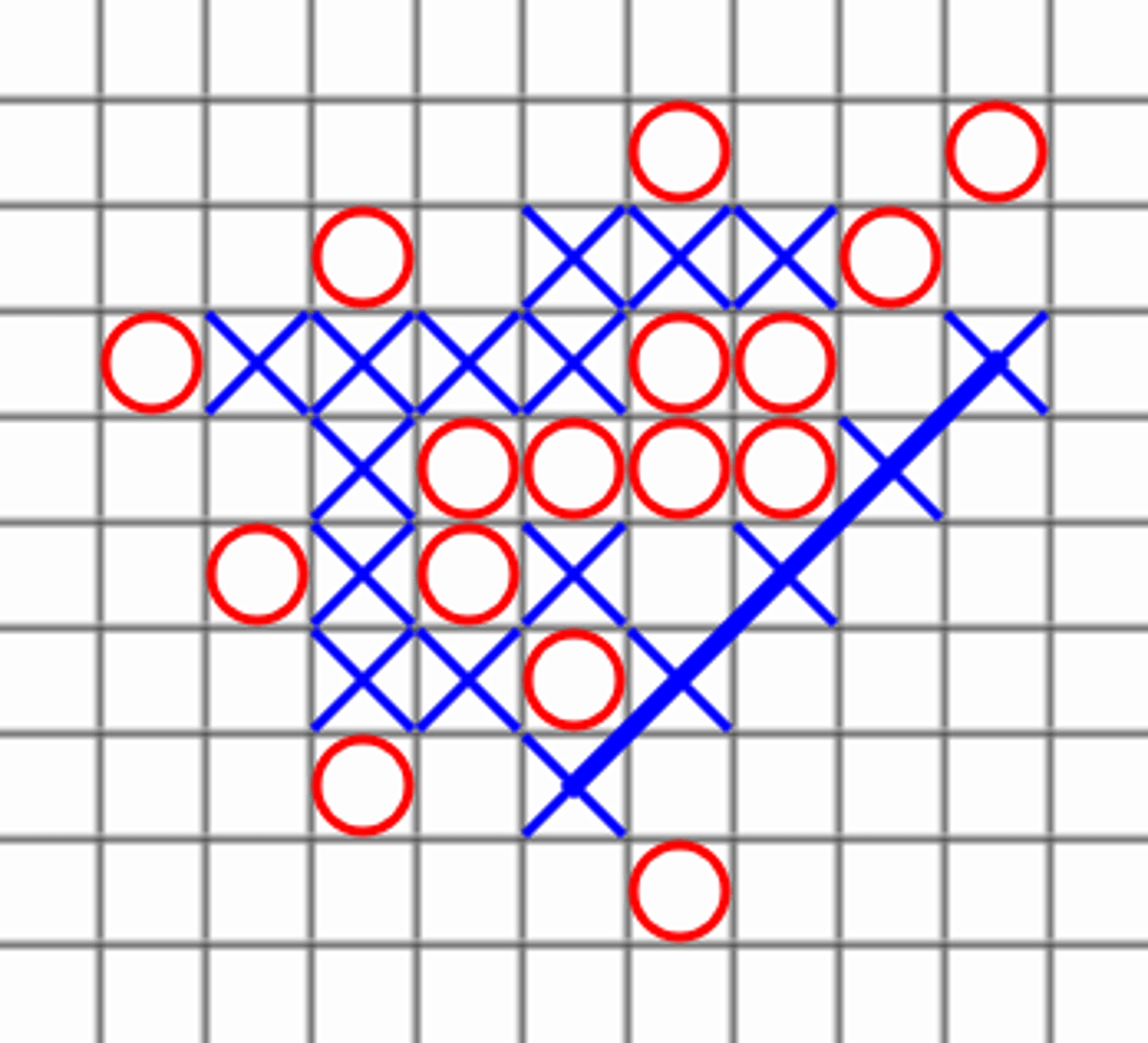 Grę rozgrywa dwóch graczy na kartce papieru w kratce, o dowolnej wielkości. Gracze naprzemiennie ustawiają na planszy symbole (np. kółko i krzyżyk) tak, aby utworzyć rząd własnych symboli składający się z 5 jednostek, które wtedy się skreśla. Wygrywa osoba, która po zapełnieniu planszy ma najwięcej skreśleń. W tej grze niemożliwy jest remis.