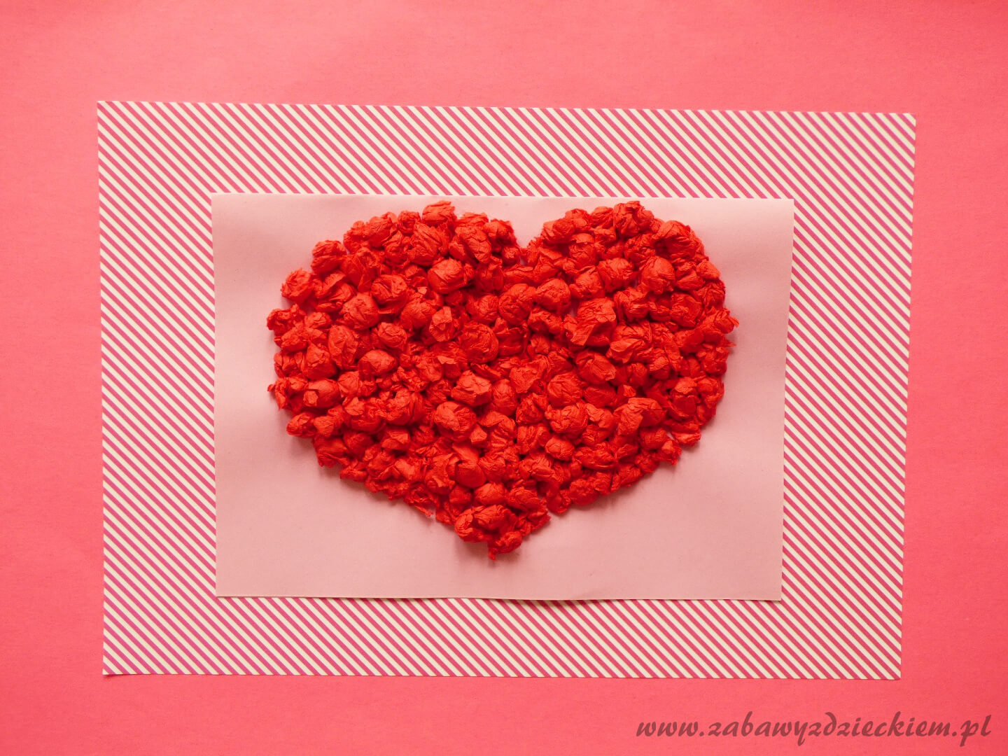 Na kartce za pomocą ołówka możemy przygotować projekt kolażu. Odpowiedniego koloru bibułkę rozdzieramy na małe kawałeczki, które w palcach zgniatamy na kulki. Tak przygotowane kulki przyklejamy na kartkę w odpowiednim miejscu zgodnie z projektem. Kulki przyklejamy gęsto, jedna obok drugiej tak, by nie było widać nigdzie kartki. W ten sposób możemy stworzyć barwne krajobrazy, portrety, okazyjne laurki.