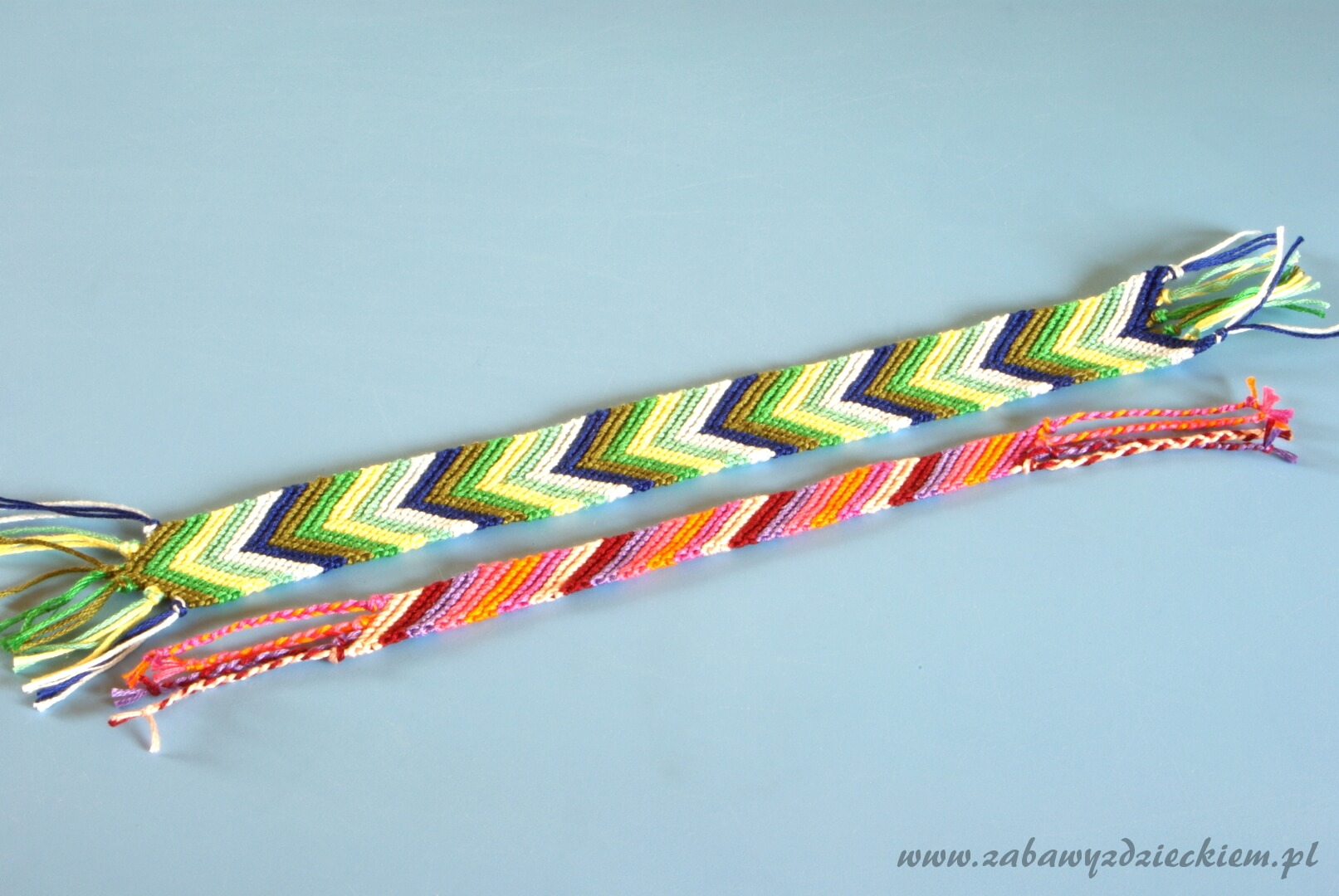 W bardzo prosty sposób możemy samodzielnie wykonać piękne bransoletki z muliny. Jeśli nie mamy muliny, możemy złożyć kilkukrotnie (6–8 razy) zwykłą nitkę – będzie trochę więcej pracy, ale efekt osiągniemy taki sam. Możemy robić bransoletki dowolnej długości i szerokości, odpowiednio dobierając liczbę nitek w jednym rzędzie. Po zrobieniu bransolety końce nitek splatamy w ozdobne warkoczyki, za pomocą których możemy potem zawiązać bransoletę na ręce.