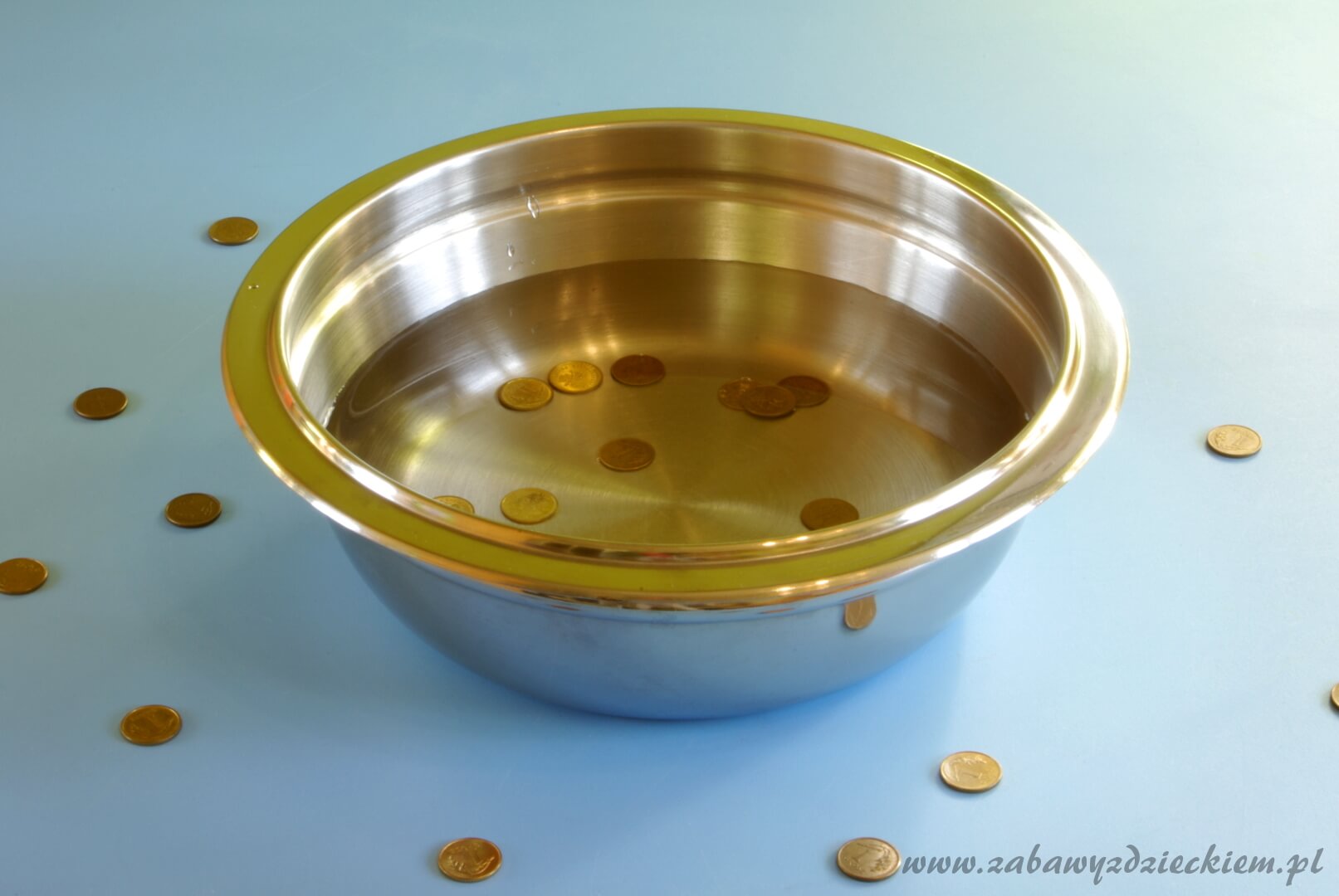 Każdy z uczestników zabawy bierze grosik i ustawia się w kolejce. Zabawa polega na tym, by każda osoba, po kolei, stojąc w pewnej odległości od miski, pomyślała życzenie i rzuciła monetę. Jeżeli grosik trafi do miski, pomyślane życzenie spełni się jeszcze w tym samym roku.