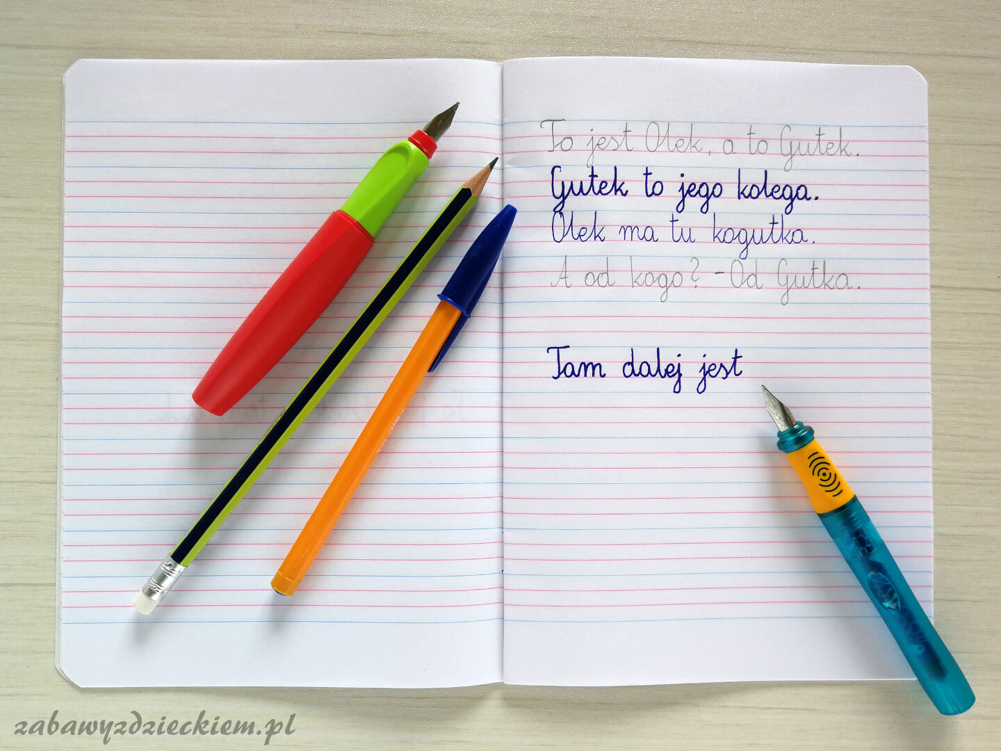ołówek, długopis lub pióro i atrament lub wkład do pióra, zeszyt do kaligrafii lub czyste kartki