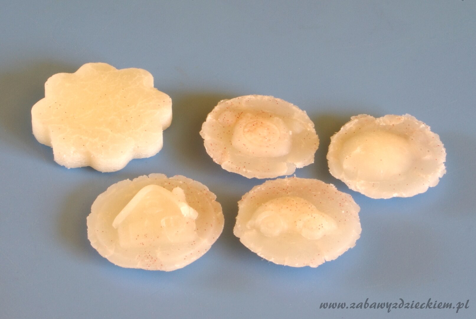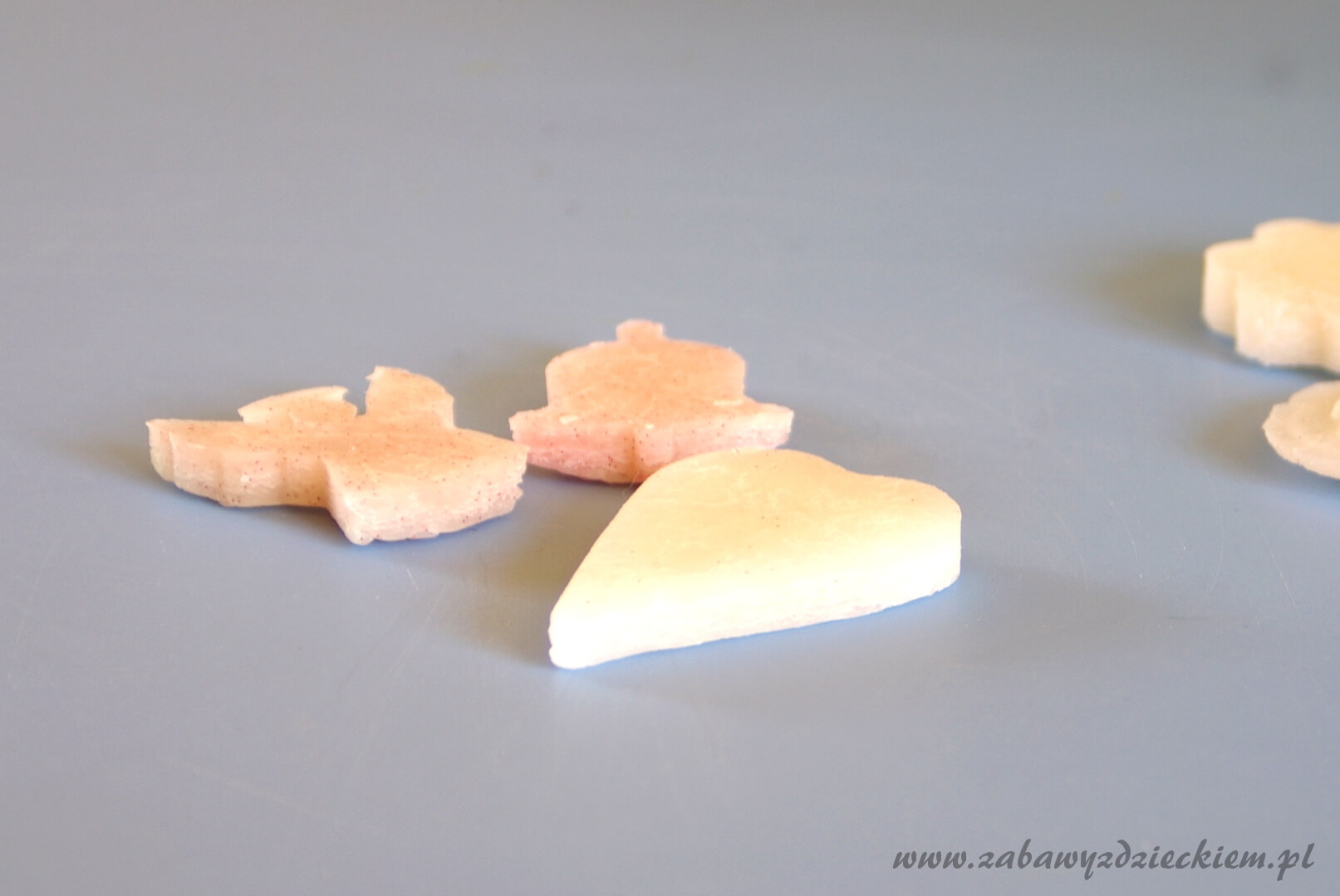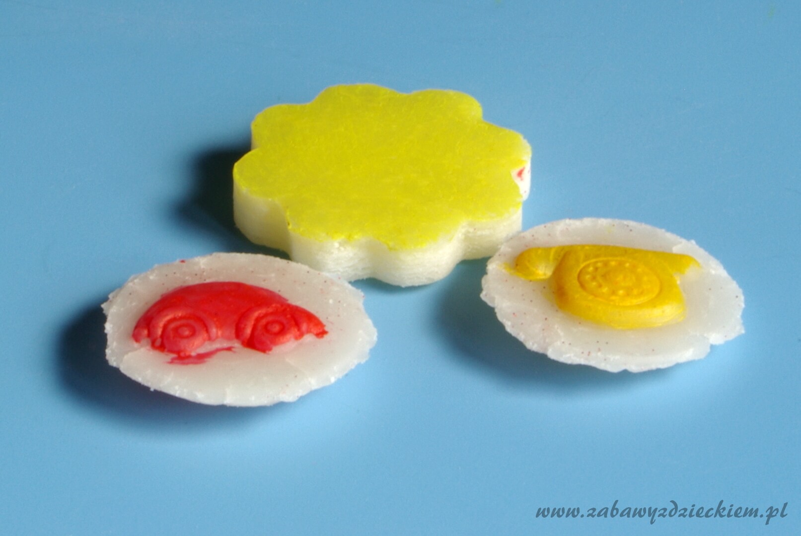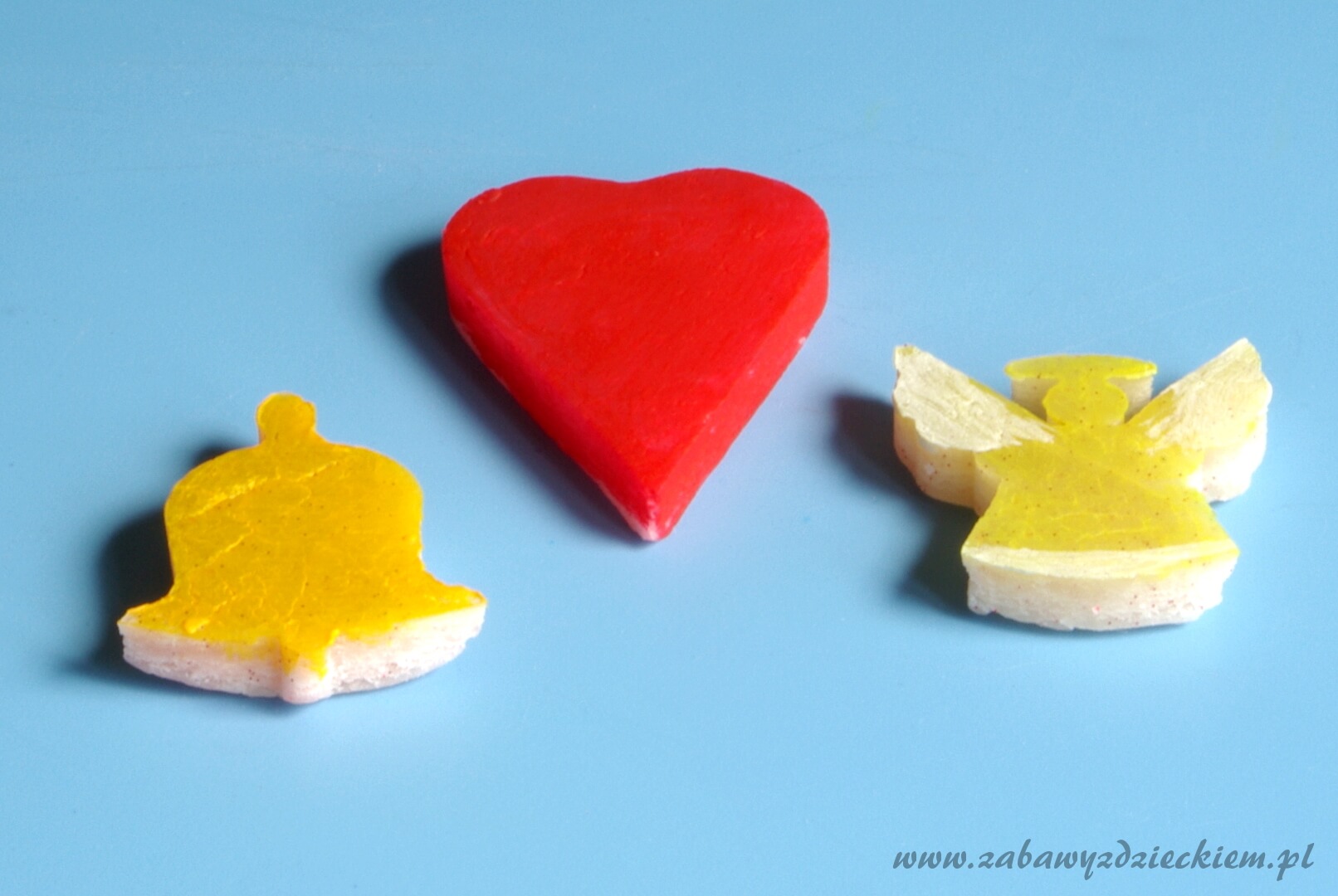 Można zrobić inne masy plastyczne: żółtą zimną porcelanę >>, masę plastyczną z sody żółtą >> i białą >>, masę solną >> oraz domową ciastolinę >>.